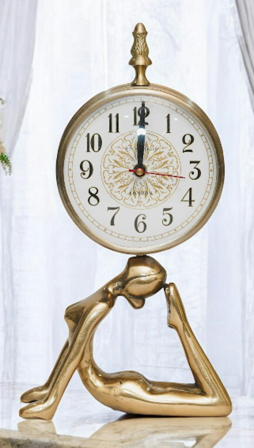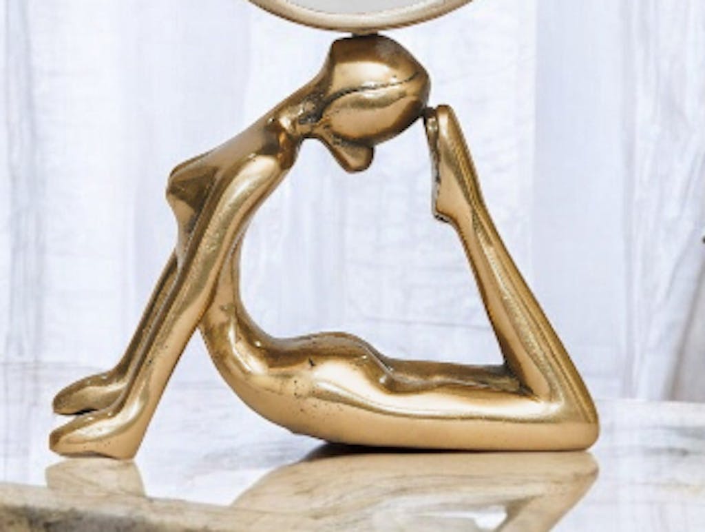Bathed in radiant gold, a serene timepiece in Dhanush Mudra offers time with poised beauty. Golden stillness is a luminous expression of balance and inner calm, perfect for sanctuaries of warmth and intention.  A powerful timepiece that draws the eye, it invites reflection while keeping you grounded in the present.