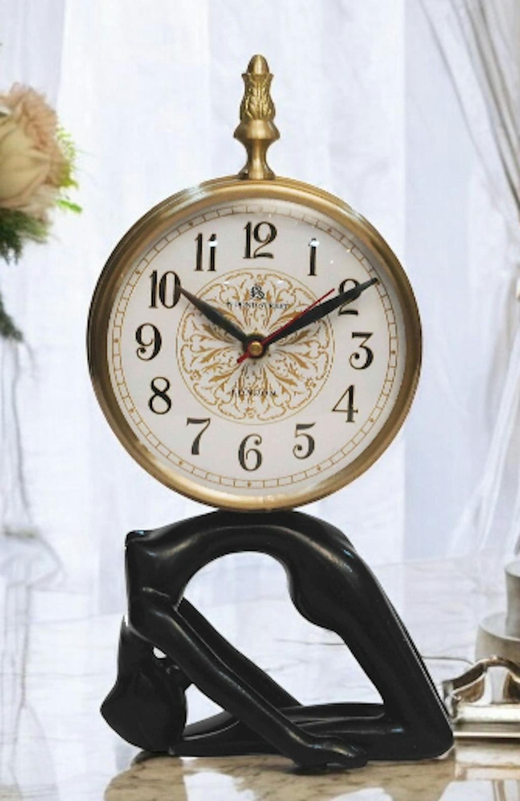 A sculpted figure in Vajrasana (Little thunderbolt pose) holds time with grounded grace. Noir serenity captures resilence with strength. It is understated, yet commanding. Finished in matt black, this statement piece is a timeless accent for peaceful, refined spaces. A powerful timepiece that draws the eye, it invites reflection while keeping you grounded in the present.