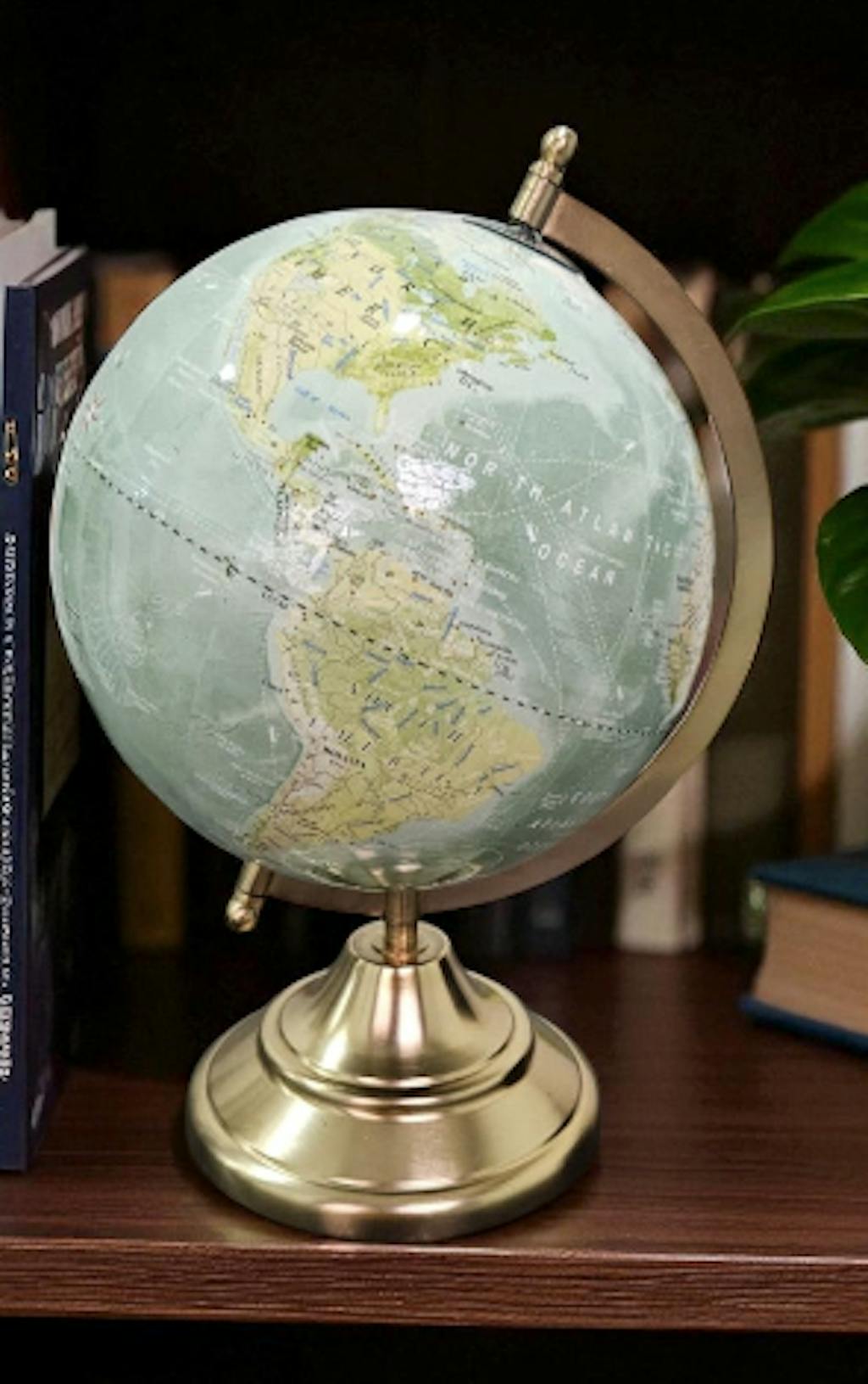 A symbol of endless curiosity and elegant design, The Voyager’s Globe adds a worldly charm to your gifting story. Resting on a sleek metallic gold base, its soft sea green surface evokes calm exploration—perfect for those who dream beyond borders. With its graceful golden arm cradling the globe, this piece strikes a balance between classic inspiration and modern minimalism. Whether styled on a desk or displayed on a bookshelf, it becomes a quiet reminder of journeys yet to come.